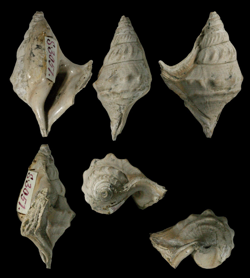 ![]() Chenopus uttingeri (Risso, 1826); "Dertonian I", Tortonian/Messinian, upper Miocene; Stazzano, Alessandria Province, Piedmont Region, Italy; Coll. Mayer-Eymar; Coll. ETH, Zürich ![]() Chenopus pespelecani (Linnaeus, 1758); "Mayencian II", Miocene; Saint-Paul-les-Dax, Landes Department, France; Coll. Mayer-Eymar no. h.394; Coll. ETH, Zürich ![]() Chenopus pespelecani (Linnaeus, 1758); "Mayencian II", Miocene; Saint-Paul-les-Dax, Landes Department, France; Coll. Mayer-Eymar no. h.394; Coll. ETH, Zürich ![]() Chenopus haeringensis (Gümbel, 1861); "Ligurianum I", Oligocene; Trifail near Lilly, Styria State (Steiermark), Austria; Coll. Mayer-Eymar no. s.3011; Coll. ETH, Zürich |