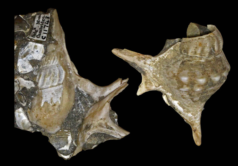 Aporrhais sowerbyi, Eocene; Turanghul, N shore of Aral Sea, Kazakhstan, Coll. Sedgwick Museum of Earth Sciences, University of Cambridge C11743-4
