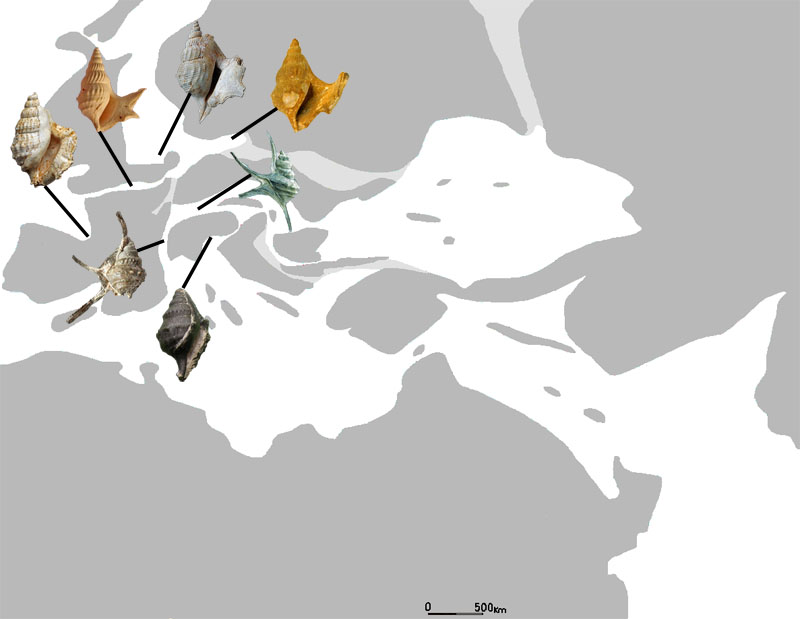 Distribution of Aporrhaidae in the lower Rupelian (34-32 ma)