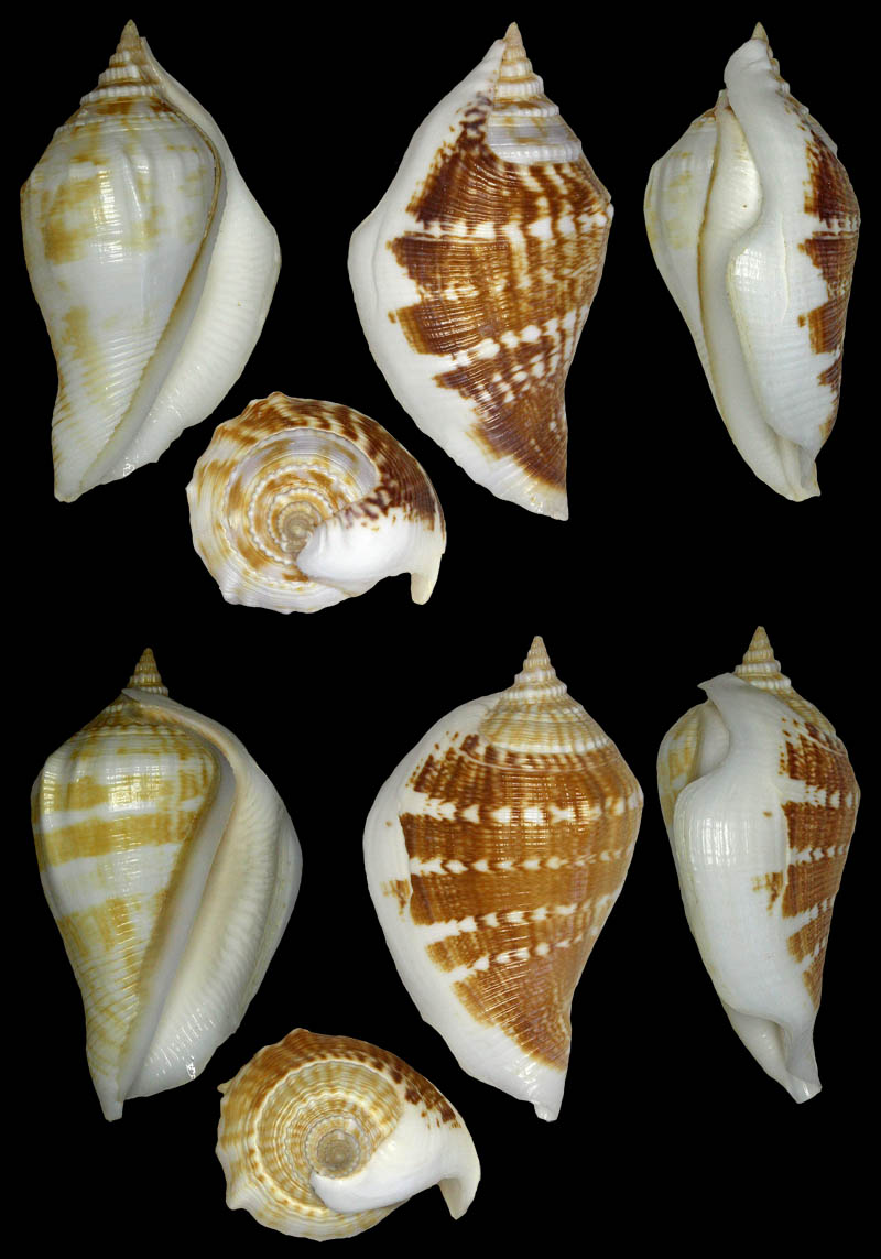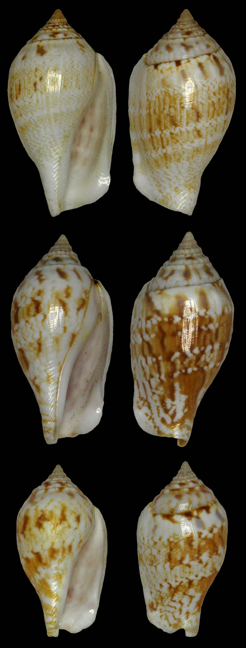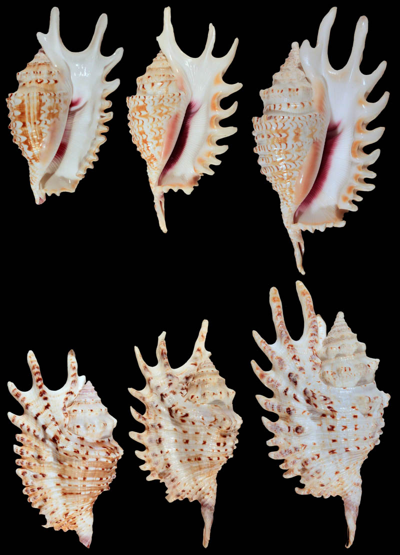 ![]() Tibia melanocheilus (Adams, 1854); Gulf of Bengal, West of Thailand; from fish trawler, at 60-80 m; 153 mm; Coll. Christian Börnke ![]() Rostellariella lorenzi Morrison, 2005; Timor Sea; trawled at 350 m; 92 mm; Coll. Christian Börnke ![]() Varicospira tyleri (H. & A. Adams, 1864); Kuantan, Pahang State, Peninsular Malaysia; 21 mm; Coll. Christian Börnke ![]() Varicospira kooli Moolenbeek & Dekker, 2007; Paratype; Ngapali Beach, Jha Taw Village, Rakhine Province, Bay of Bengal, Myanmar; 18°15'N, 94°20'E; beach at low tide, crabbed, 12/2006; Ex-coll. Kool; Coll. Christian Börnke |