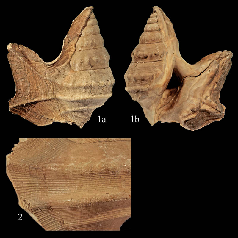 from his collection ![]() Aporrhais cf. speciosa (von Schlotheim, 1820); juvenile; "Nah-Geschiebe", basal Vierlandian, lower Miocene; Neetze near Bleckede, Lower Saxony State, Germany; 5,9 mm; Coll. Gerhard Stein ![]() Aporrhais sp.; Syltian, upper Miocene; Morsum Kliff, Sylt, Schleswig-Holstein State, Germany; 1: height 21 mm, 2: width 10 mm; Coll. Gerhard Stein ![]() Persististrombus praecedens Schaffer, 1912; x-Layer, Egerian; Eger, Hungary; Coll. Gerhard Stein |