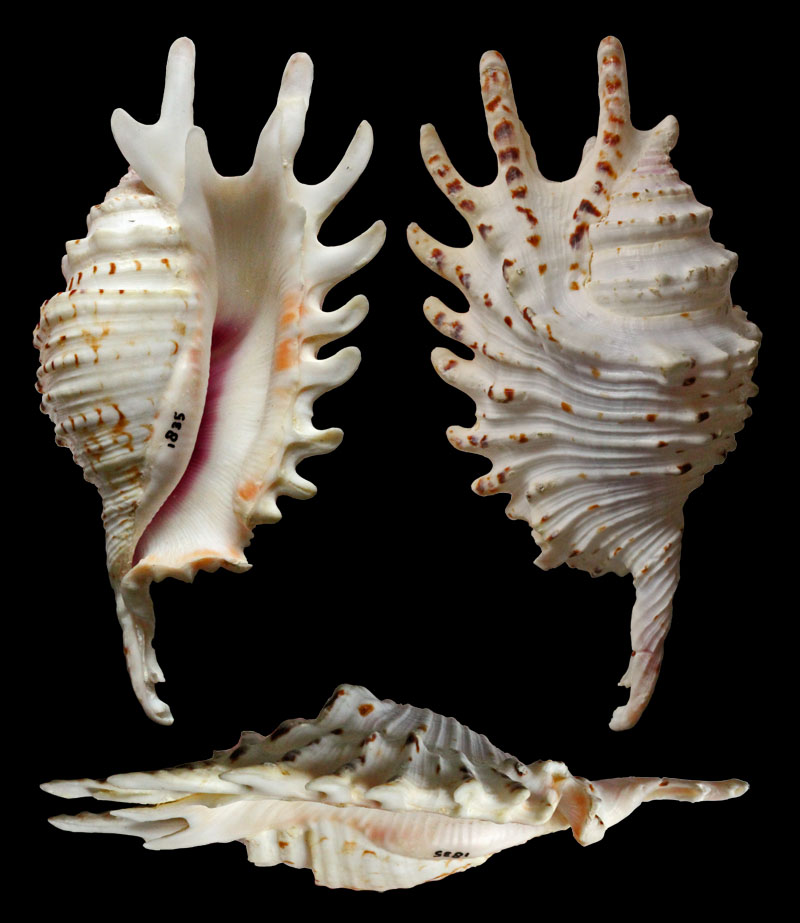 ![]() Lambis millepeda x truncata sowerbyi; Hybrid form; Sulu Island, Philippines Islands; Coll. Gijs Kronenberg no. 5783