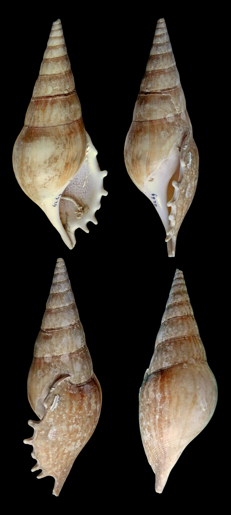 ![]() Strombus alatus Gmelin, 1791; Fort Worth inlet, Florida, USA; at 10'-20' on sand; Coll. Gijs Kronenberg no. 5411 ![]() Strombus alatus Gmelin, 1791; Sanibel Island, Lee County, Florida, USA; 1970; Coll. Gijs Kronenberg no. 5409 ![]() Strombus alatus Gmelin, 1791; Sanibel Island, Lee County, Florida, USA; 1970; Coll. Gijs Kronenberg no. 4000 ![]() Strombus alatus Gmelin, 1791; Sanibel Island, Lee County, Florida, USA; by scuba at 55' deep; 1988; Coll. Gijs Kronenberg no. 5412 ![]() Strombus alatus Gmelin, 1791; Sanibel Island, Lee County, Florida, USA; subadult; Coll. Gijs Kronenberg no. 1661 ![]() Strombus alatus Gmelin, 1791; Centent Key, Monroe County, Florida, USA; Coll. Gijs Kronenberg no. 0342 ![]() Strombus alatus Gmelin, 1791; Keys, Monroe County, Florida, USA; Coll. Gijs Kronenberg no. 5408 (t), 0325(b) ![]() Strombus alatus Gmelin, 1791; Key Largo, Monroe County, Florida, USA; 1972; Coll. Gijs Kronenberg no. 5413 ![]() Strombus alatus Gmelin, 1791; Estero Island, Florida, USA; 11/1973; Coll. Gijs Kronenberg no. 5407 ![]() Strombus alatus Gmelin, 1791; Florida, USA; Coll. Gijs Kronenberg no. 5410 ![]() Europrotomus schroeckingeri (Hörnes in Hörnes & Auinger, 1884); lower Lageniden zone, Badenian, Miocene; Weitendorf, Styria (Steiermark) State, Austria; 11/1999; Coll. Gijs Kronenberg no. 6402 ![]() Mirabilistrombus listeri (Gray, 1852); Arafura Sea, between Aru and Australia; trawled by Indonesian fishermen at approx. 144 m; 2005; 116,8 mm; Ex-coll. Bunjamin Dharma; Coll. Kronenberg no. 6289 ![]() Doxander japonicus (Reeve, 1851); Fukuma, Fukuoka Prefecture, Kyushu Region, Kyushu Island, Japan; Coll. Gijs Kronenberg no. 3072 ![]() Doxander japonicus (Reeve, 1851); Mikawa Bay, Aichi Prefecture, Chubu Region, Honshu Island, Japan; dredged at 10-20 fathoms; Coll. Gijs Kronenberg no. 5631 ![]() Doxander japonicus (Reeve, 1851); Mikawa Bay, Aichi Prefecture, Chubu Region, Honshu Island, Japan; dredged at 5-10 fathoms; 1982; Coll. Gijs Kronenberg no. 5632 ![]() Doxander vittatus vittatus (Linnaeus, 1758); Cooktown, Queensland State, north east Australia; trawled offshore at 120 m; Coll. Gijs Kronenberg no. 110 ![]() Doxander vittatus vittatus (Linnaeus, 1758); off Dingo Beach, Queensland State, north east Australia; trawled; 1982; Coll. Gijs Kronenberg no. 528 ![]() Strombus (Canarium) maculatus depauperatus Dautzenberg & Bouge, 1933; Vinapu, Easter Islands; at 50 ft. on sand & Algae, by scuba diving; 5/1986; Coll. Kronenberg no. 5720 ![]() Strombus maculatus (Sowerby, 1842); Anakaena, Easter Islands; at 2 m. in sand around weeds; 10/1988; Coll. Gijs Kronenberg no. 2343 ![]() Canarium urceus orrae (Abbott, 1960); Broome, Western Australia, Australia; Coll. Gijs Kronenberg no. 5676 ![]() Canarium urceus orrae (Abbott, 1960); Monte Belo Islands, Western Australia, Australia; 1982; Coll. Gijs Kronenberg no. 538 ![]() Canarium urceus orrae (Abbott, 1960); Drimmie Head, Northern Territory, Australia; at low tide on sand flats; Coll. Gijs Kronenberg no. 5924 ![]() Canarium urceus incisus (Wood, W., 1828); Marau Sound, Gualdacanal Island, Gualdacanal Province, Solomon Islands, south-western Pacific; by diver at 30 m at night; Coll. Gijs Kronenberg no. 653 ![]() Canarium urceus incisus (Wood, W., 1828); Mele beach, Efate Island, Vanuatu Archipelago (formerly New Hebrides), South Pacific Ocean; snorkeling at 3' to 5', dead; 8/1999; Coll. Gijs Kronenberg no. 598 ![]() Canarium urceus incisus (Wood, W., 1828); Langa Langa Lagoon, Malaita, Solomon Islands; Coll. Gijs Kronenberg no. 515 ![]() Strombus (Canarium) mutabilis ostergaardi Pilsbry, 1921; Kaneohe, Oahu Island, Hawaii Islands, USA; Kaneohe sewer trench excavation, imbedded in hard pack matrix of sand / Limestone walls of trench blocks; 10/1994; Coll. Gijs Kronenberg no. 5130 ![]() Canarium klineorum (Abbott, 1960); Trincomalee, Eastern Province, Sri Lanka Island (formerly Ceylon); 8/1983; Coll. Gijs Kronenberg no. 655 ![]() Terestrombus afrobellatus (Abbott, 1960); Fernao Veloso beach, Nacala Bay, Nampula Province, Republic of Mozambique, Indian Ocean; Coll. Gijs Kronenberg no. 2823 ![]() Terestrombus afrobellatus (Abbott, 1960); Toliara (formerly Tuléar), Atsimo-Andrefana Region, southern Madagascar; in shallow water on sand; 2/2002; Coll. Gijs Kronenberg no. 6209 ![]() Terestrombus afrobellatus (Abbott, 1960); Raabandhiuraa Island, Malaku Atoll, Maldives; alive at 20 m by scuba diving; 11/1998; Coll. Gijs Kronenberg no. 5908 ![]() Laevistrombus turturella (Röding, 1798); Krabi, Krabi Province, Thailand, Andaman Sea; black parietal and outer lip edge; 2007; Coll. Gijs Kronenberg no. 6322 ![]() Laevistrombus canarium (Linnaeus, 1758); Turtle Island, Tawi-Tawi Province, A.R.M.M. Region, Philippines Islands; in sandy mud at 10-60 ft.; Coll. Gijs Kronenberg no. 2828 ![]() Laevistrombus canarium (Linnaeus, 1758); Dingo Beach, Queensland State, north east Australia; sand spit at rising tide; Coll. Gijs Kronenberg no. 5930 ![]() Laevistrombus canarium guidoi (Man in't Veld & De Turck, 1998); Vanuatu Archipelago (formerly New Hebrides), South Pacific Ocean; Coll. Gijs Kronenberg no. 5983 ![]() Laevistrombus canarium guidoi (Man in't Veld & De Turck, 1998; Efate Island, Vanuatu Archipelago (formerly New Hebrides), South Pacific Ocean; bought on native market; 8/1999; Coll. Gijs Kronenberg no. 5984 ![]() Tricornis tricornis (Lightfoot, 1786); Red Sea, west Coast Gulf of Suez, 10 km south of Safaga (26° 39´ 30´´ N, 33° 56´ 30´´ E), Egypt; large muddy / sandy flat with coral blocks; 8/1988; Coll. Gijs Kronenberg no. 1457 ![]() Tricornis tricornis (Lightfoot, 1786); Somalia, Indian Ocean; 1991; Coll. Gijs Kronenberg no. 2579 ![]() Tricornis tricornis (Lightfoot, 1786); immature specimen; Somalia, Indian Ocean; 1991; Coll. Gijs Kronenberg no. 2579 ![]() Tricornis maximus (Martin, 1883); juvenile specimen; Miocene; Nyalindung, Sukabumi, West Java Province, Java Island, Indonesia; Coll. Gijs Kronenberg ![]() Orthaulax gabbi Dall, 1890; F