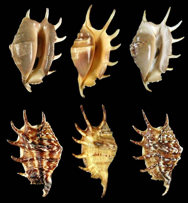 - right column: Palawan Island, Palawan Province, Mimaropa Region; collected 20-25 meters deep by fishermen of Olango Island, with periostracum; 253 mm; 2009; no. 548627