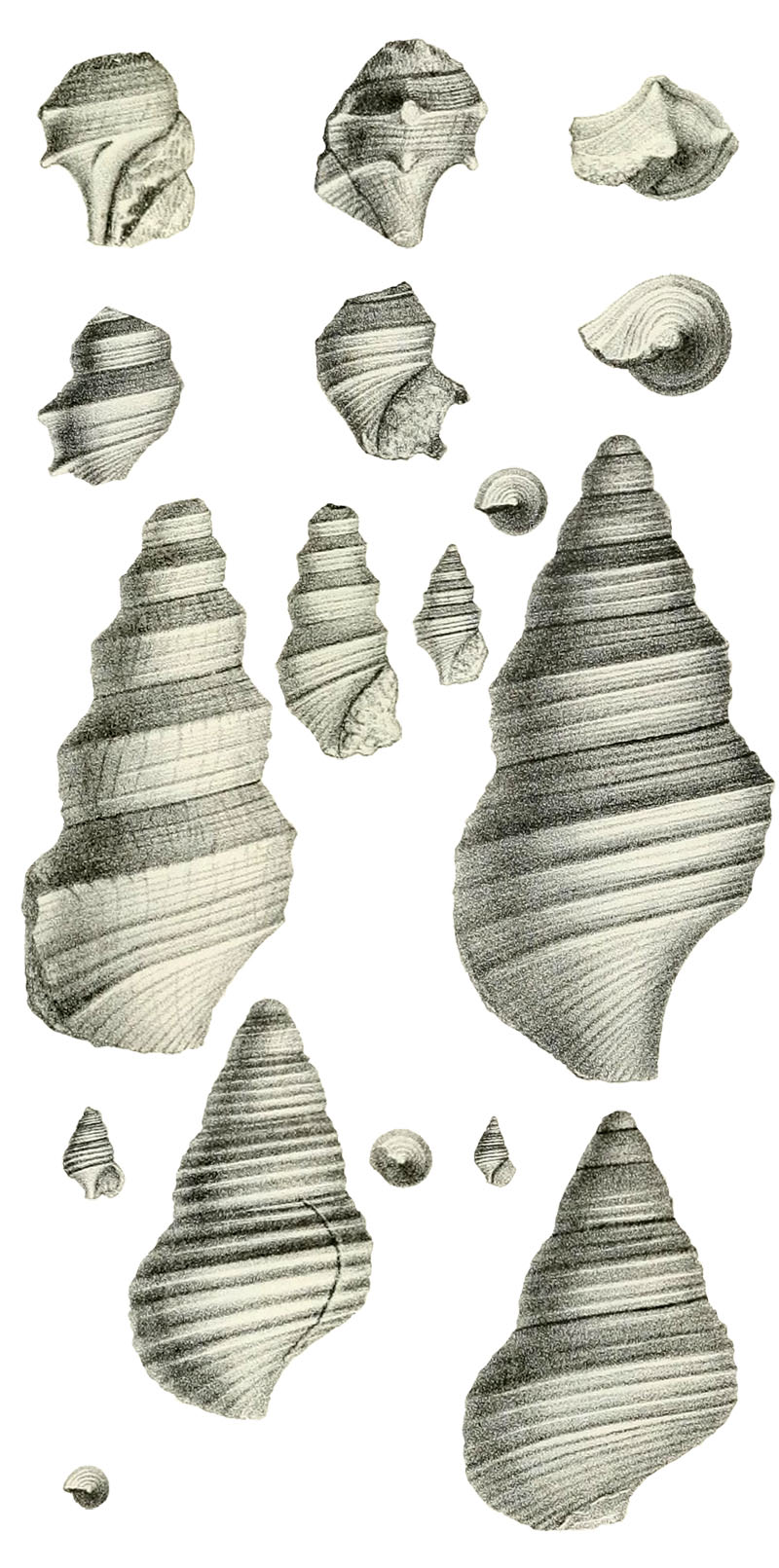 ![]() Alaria hispida Piette, 1869, pl. 50, fig. 1-17 ![]() Alaria hispida Piette, 1869; Oxfordian, Jurassic; Saint-Mihiel, Meuse, Lorraine, France; Syntype; H. 8 mm; Coll. MNHN no. R00190; Copyright Museum national d'Histoire naturelle Paris |