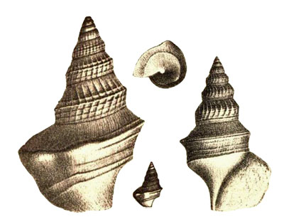 - "Testâ turritâ, fusiformi; anfractibus 7-8, primis lævigatis, rotundatis; aliis in medio angulatis, longitudinaliter transversegue striatis; ultimo bicarinato et transverse striato. Canali recto? Labri expansione in digitationes productâ?"