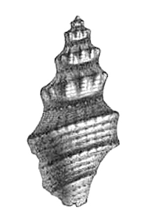 - "Coquille allongée, épaisse, composée de cinq tours anguleux, ornés en arrière de leur milieu d'une série longitudinale de tubercules saillants formant carène et remontant un peu vers le haut du tour, et en outre de stries fines également longitudinales. Sur le dernier tour, les tubercules s'atténuent en augmentant de nombre et dégénèrent en une carène denticulée; deux carènes équidistantes mais moins saillantes s'observent entre la première et le canal. On remarque de plus, dans l'intervalle laissé libre entre les trois carènes, trois ou quatre côtes fines, régulières, longitudinales, finement denticulées."