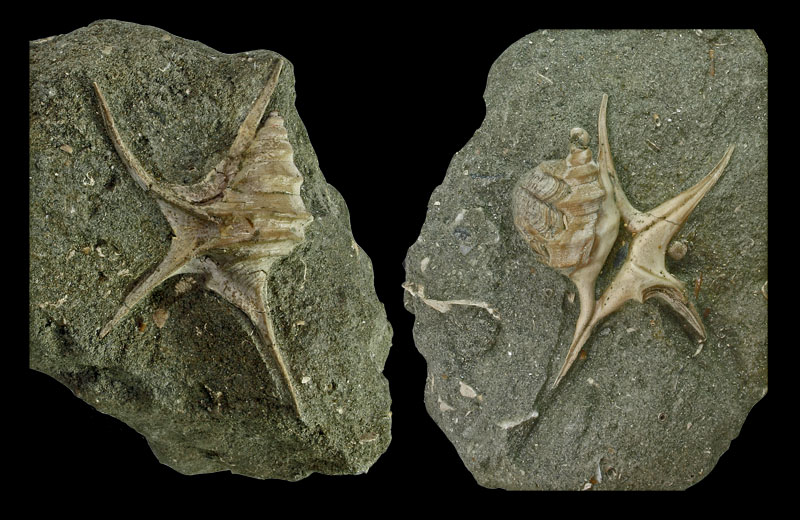 ![]() Aporrhais uttingeriana (Risso, 1826); Pliocene; Ayios Sozomenos, Nicosia, Cyprus; coll. Demetris Kolokotronis ![]() Aporrhais uttingeriana (Risso, 1826); Piacenzian, upper Pliocene; Castell'Arquato, Piacenza Province, Emilia-Romagna Region, Italy; Coll. Ulrich Wieneke