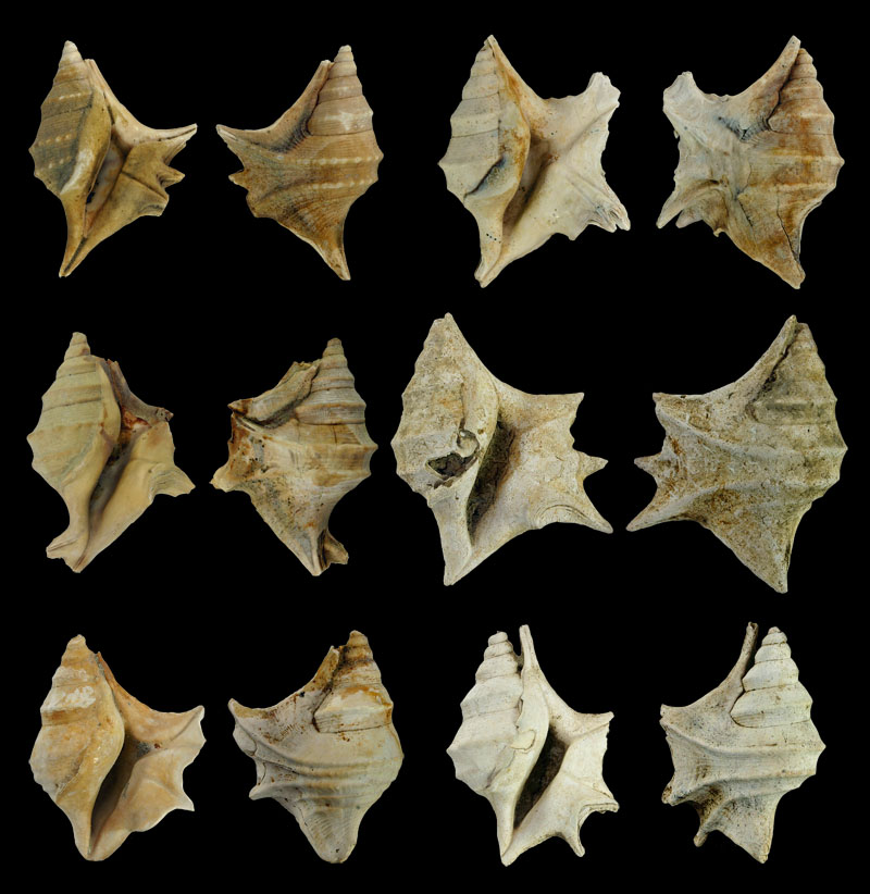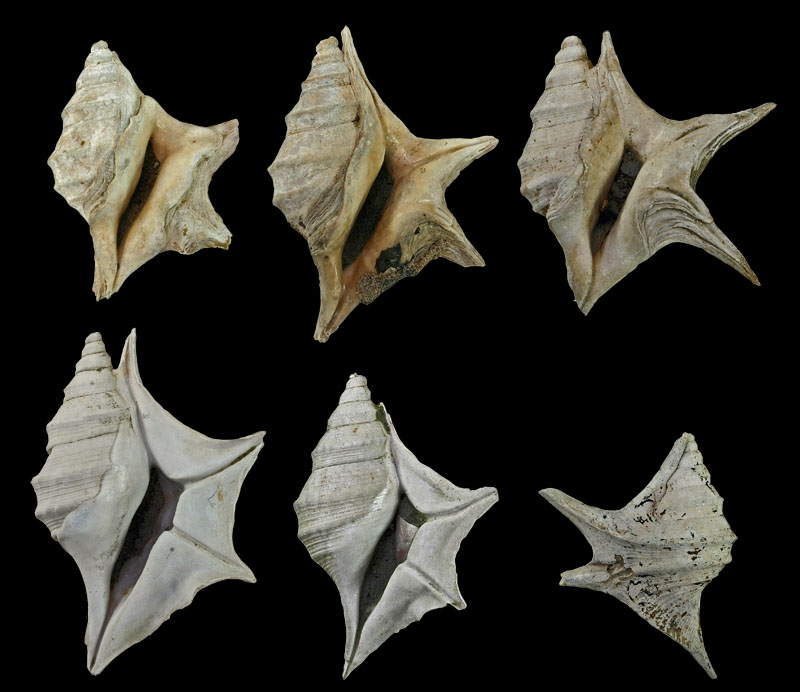 ![]() Aporrhais uttingeriana (Risso, 1826); Pliocene; near San Gimignano, Siena, Siena Province, Tuscany Region, Italy; 53 mm; Coll. Han Stoutjesdijk ![]() Aporrhais uttingeriana (Risso, 1826); Pliocene; Rio dei Carbonari, Badagnano, Piacenza Province, Emilia-Romagna Region, Italy; Coll. Han Stoutjesdijk ![]() Aporrhais uttingeriana (Risso, 1826); freak forms; Piacenzian, upper Pliocene; Castell'Arquato, Piacenza Province, Emilia-Romagna Region, Italy; Coll. Ulrich Wieneke