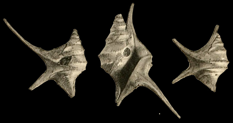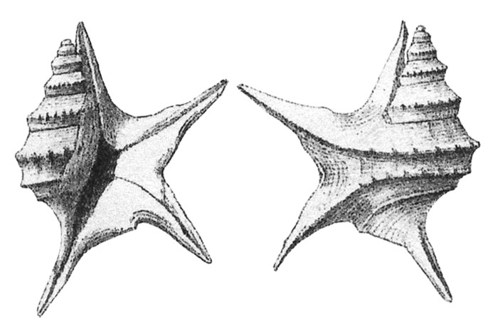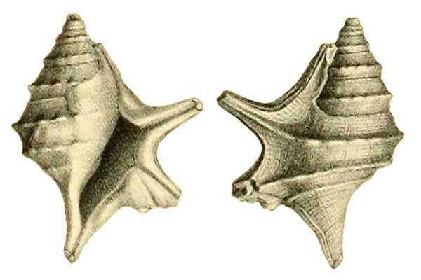 ![]() Chenopus (Aporrhais) pespelecani in Hoernes & Auinger, 1884, pl. 18, fig. 7 a,b