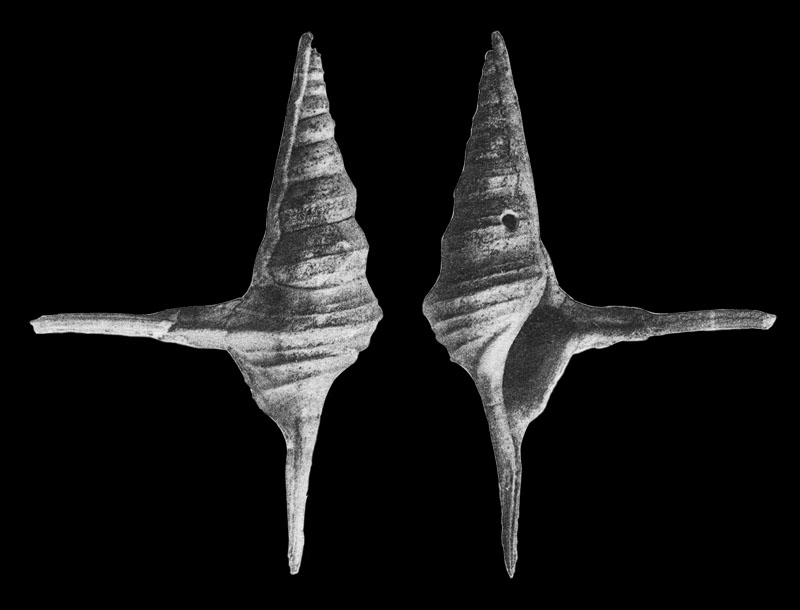 Chenopus (Araeodactylus) plateaui (Cossmann, 1889); in Cossmann, 1904, pl. V, fig. 16, 20