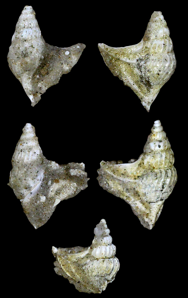Aporrhais analogus (Deshayes, 1865); Corbula beds, Thanet Sands, Paleocene; Bishopstone near Herne Bay, Kent County, South East Region, England; Coll. BM(NH) no. G.61988; Copyright BM(NH)