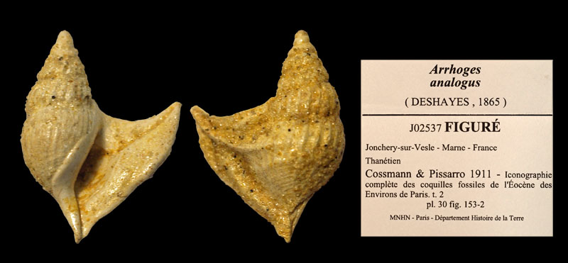 Arrhoges analogus (Deshayes, 1865); Thanetian, Paleocene; Jonchery-sur-Vesle, Marne Department, France; Coll. MNHN no. J02537; Copyright Museum national d'Histoire naturelle Paris