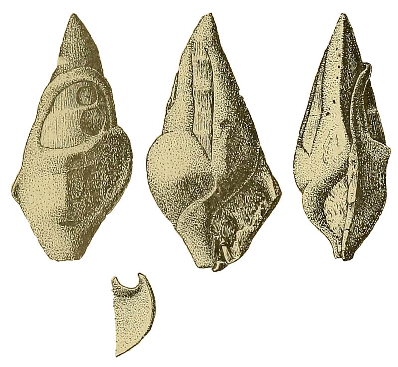 ![]() Rostellaria (Calyptraphorus) velata, Con., var. compressa Aldrich, 1894, pl. XII, fig. 2, 2a, 2b History and Synonymy 1884 Anchura White, U. S. Geol. Survey, Bull. 4, p. 17. 1886 Rostellaria velata Conrad, Aldrich, Geol. Survey Alabama, Bull. 1, p. 59 (name only). 1894 Calyptraphorus velatus (Conrad), Harris, Geol. Survey Arkansas, Ann. Rept. for 1892, vol. 2, p. 46. Rostellaria (Calyptraphorus) velata Conrad var. compressa Aldrich, in Rept. Geol. Coastal Plain Alabama, Geol. Survey Alabama, p. 244, pi. 12, figs. 2, 2a-b. 1896 ![]() Calyptraphorus velatus var. compressa Aldrich, Harris, Bull. Am. Paleontology, vol. 1, No. 4, p. 104, pl. 10, figs. 7, 7a-b, 8 (in part). 1912 Calyptraphorus velatus Conrad var. compressus Aldrich, Maury, Acad. Nat. Sci. Philadelphia, Jour., 2d ser., vol. 15, p. 88, pi. 12, figs. 8-10 ![]() Calyptraphorus velatus var. compressus in Maury, 1912, pl. XII, fig. 8, 9, 10 1933 Gardner, 1933: Calyptraphorus compressus: Kincaid Formation (Danian?) References |