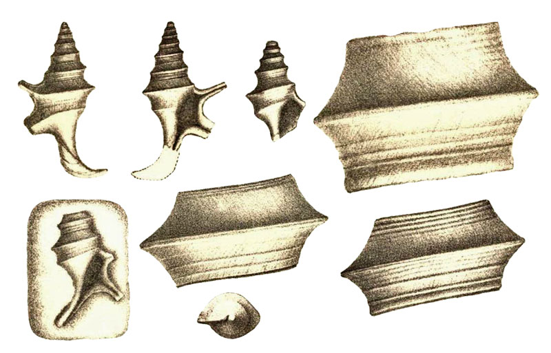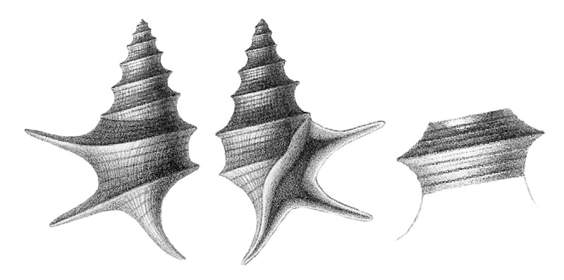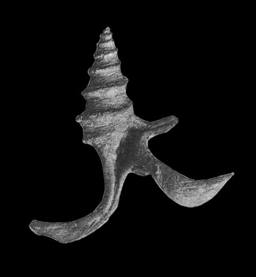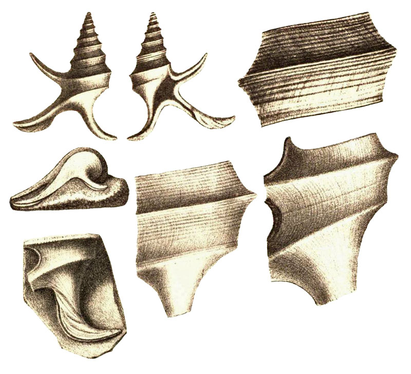 Locus typicus: Guéret, near Asnières, Sarthe Department, France Stratum typicum: Bathonian, middle Jurassic ![]() Pterocera lorieri in d’Orbigny, 1850, pl. 429, fig. 8, 9, 10 History and Synonymy 1864 Description of Alaria lorieri (d’Orbigny, 1847) by Piette, 1864: