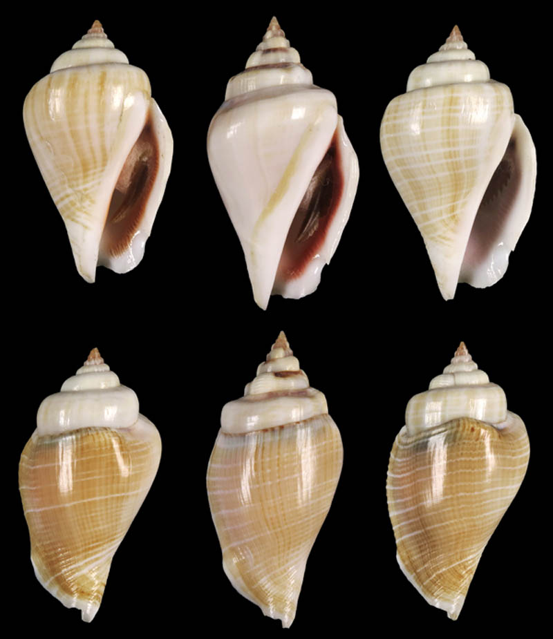 ![]() Gibberulus gibberulus (Linnaeus, 1758); Protoconch; Gulf of Aqaba, Jordan; Coll. Klaus Bandel ![]() Fully grown larva of Gibberulus gibberulus (Linnaeus, 1758); Protoconch; Gulf of Aqaba, Jordan; Coll. Klaus Bandel The larval shell of Gibberulus gibberulus consists 4.5 whorls with shell width of almost 1 mm and a height of 1.1 mm. The embryonic shell is 0.16 mm wide and is ornamented with complex rows of fused granules. The first larval whorl is densely covered by granules. The transition to the second larval whorl is characterized by the onset of faint spiral lines and decrease of granular ornamentation. Spiral lines become the dominant sculpture of the two youngest larval whorls. The aperture is almost oval in outline with a distinct siphonal notch. The operculum seals the aperture tightly, and has a thorn-like anterior spine that fits in the siphonal notch. The nucleus of the operculum lies close to the anterior (basal) part of the columella and shows remains of spiral growth, whereas later growth increments are concentric. The larva swims with a six-lobed velum. Each velar lobe is almost twice as long as the conch. The larval conchs have a spherical, smooth appearance, and a more-or-less transparent shell. The larva carries the shell in such a way that the head with tentacles and eyes point in swimming direction and long narrow foot with operculum is held in behind. In the mantle cavity a large ciliated organ is seen representing the gill or osphradium. (Text by Klaus Bandel) ![]() Drawing of Gibberulus gibberulus larva by Klaus Bandel Specimens from private collections ![]() Gibberulus gibberulus (Linnaeus, 1758); Toliara (formerly Tuléar), Atsimo-Andrefana Region, southern Madagascar; l: 53,7 mm, m: 51,0 mm, r: 53,3 mm; Coll. Guido Poppe nos. 642878, 642881, 642883 ![]() Gibberulus gibberulus (Linnaeus, 1758); Toliara (formerly Tuléar), Atsimo-Andrefana Region, southern Madagascar; on mud flats at low Tide; 2006; l: 55,5 mm, m: 62,2 mm, r: 54,7 mm; Coll. Guido Poppe nos. 641389, 641388, 641390 ![]() Gibberulus gibberulus albus (Linnaeus, 1758); Mirbat, Dhofar Governorate, southwestern Oman; on sand in 3 m at night dive; 11/2014; Collected by and coll. Christian Börnke ![]() Gibberulus albus (Mörch, 1850); Dhow Anchorage, 18 km south of Safaga, Egypt, Red Sea; Coll. Albert Ekkelenkamp ![]() Gibberulus albus (Mörch, 1850); Hurghada, Red Sea Governorate, Egypt, Red Sea; dived, 5 m, in sand; circa 2000; l: 45,6 mm, m: 51,6 mm, r: 47,5 mm; Coll. Guido Poppe ![]() Gibberulus albus (Mörch, 1850); Gulf of Aden, Arabian Sea; Coll. Wolfgang Wranik References