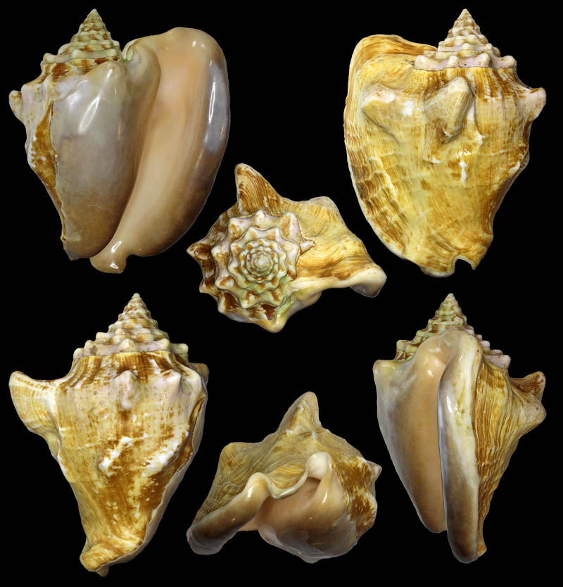 - Pérez Pérez, M., & Aldana Aranda, D. (2000). Distribución, abundancia y morfometría de Strombus costatus, Turbinella angulata, Busycon contrarium y Pleuroploca gigantea (Mesogasteropoda: Strombidae, Turbinellidae, Neptuneidae y Fasciolaridae) en Yucatán, México. Revista de Biología Tropical, 48(1), 145-152.