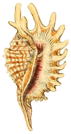 - "Outer lip with 10 short compressed processes; the two upper divaricated; channel short; aperture and lips white, ribbed, and within purple."