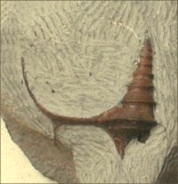 Locus typicus: Ervy, Épothémont, Dienville, Gérodot, Aube Department, France Stratum typicum: Albian, lower Cretaceous ![]() Rostellaria carinella d'Orbigny, 1843, pl. 207, fig. 7, (8) Types: Kollmann, 1978 found in the Musée Nationale d'Histoire Naturelle in Paris two lots with P. carinella with the ID's B14471 and B14472 in the stratigrahical Collection. The Orbigny collection contains no P. carinella. B14471 (Collection Vibraye) was available for d'Orbigny, B14472 not. B14471 contains 8 specimen where Kollmann, 1978 chose a Neotype from (see Kollmann, 1978, pl. 4, fig. 43-44). History and Synonymy 1833 Sowerby, 1832 (in Adam Sedgwick, Sir Roderick Impey Murchison; A sketch of the structure of the eastern Alps: with sections through the newer formations on the northern flanks of the chain, and through the tertiary deposits of styria...) described a Fusus carinella (synonym of Fusus carinellus Sowerby, 1818?), which might be this species (cited after Gardner, 1875). Fusus carinella J. de C. Sowerby, 1832, p. 418, pl. 39, fig. 24 was renamed by Orbigny, 1850 (Prodrome) in Fusus subcarinella. ![]() Fusus carinella J. de C. Sowerby, 1832, pl. 39, fig. 24 1866 Stoliczka, 1866: "Fusus carinella Sow. l.c. Taf. 39, Fig 24 = F. aubcarinella D'Orb. Es ist mir keine einzige Art aus den Gosauablagerungen bekannt, die ganz ähnliche Umgänge besässe. Vielleicht könnte es ein Fragment eines grösseren Exemplares von Pterocera subtilis Zek. sein." 1875 ![]() Aporrhais carinella in Gardner, 1875, pl. V, fig. 5, 6, 6a Pictures ![]() Anchura carinella (d'Orbigny, 1843); Gault clay, Albian, lower Cretaceous; Folkestone, Kent County, South East Region, England; Coll. BM(NH) ![]() Pseudanchura carinella (d'Orbigny, 1843); Gault clay, Albian, lower Cretaceous; Folkestone, Kent County, South East Region, England; Coll. BM(NH) no. 46745; Copyright BM(NH) ![]() Pseudanchura carinella (d'Orbigny, 1843); Douvilleceras-zone, middle Albian, lower Cretaceous; all from Courcelles Quarry, Troyes, Aube Department, France; Coll. Ulrich Wieneke
