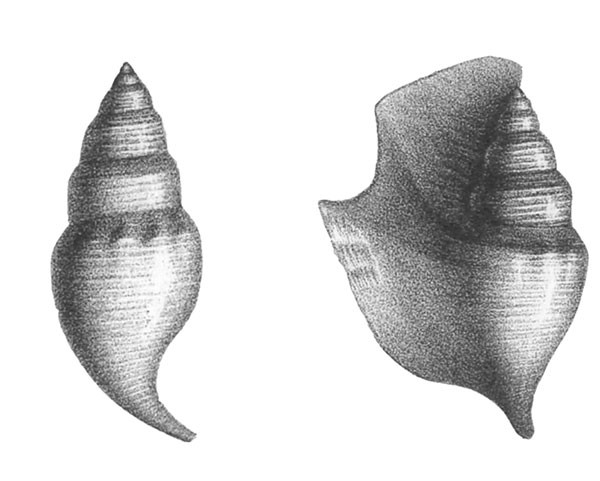 - "P. testâ ovato-elongatâ, fusiformi, costis transversis filiformibus, subalternè inaequalibus ornatâ, anfractibus 7, posterioribus convexissimis, anterioribus posticè carinatis, ultimo ad suturam subdentato; canali incurvo; labri expansione testam superante; digitis?"