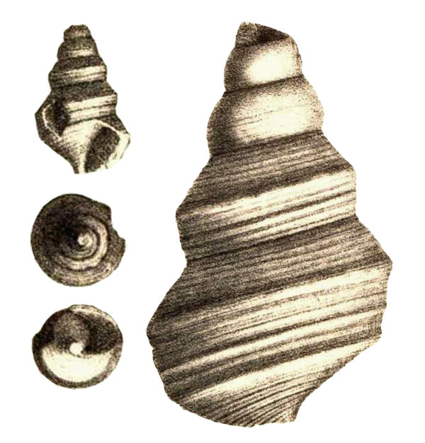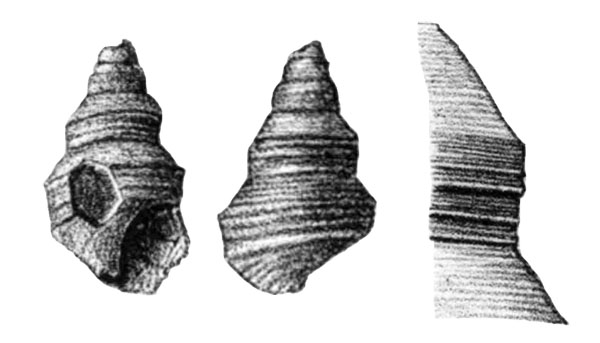 - "Testâ turritâ, fusiformi; anfractibus convexis; primis laevigatis; aliis carinatis, inaequaliter striatis; ultimo spinoso, bicarinato. Caeterae notae desunt."