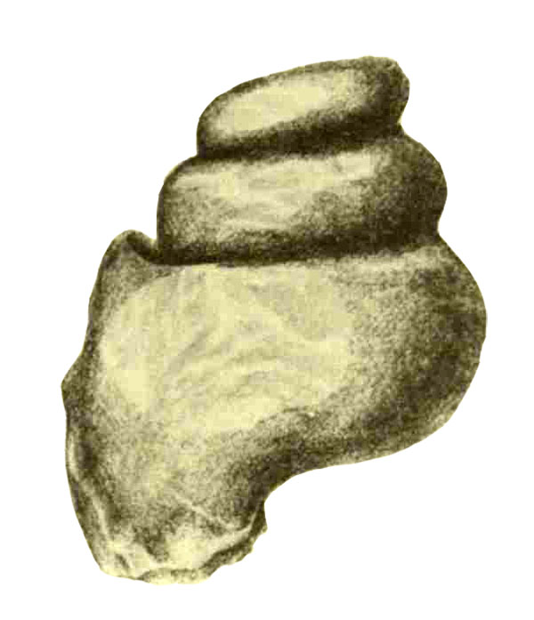 - "U Korycan neni vzacnostf jadro zkameneliny, jejiz pravou prislusnost tezko lze uhodnouti. Skorapka byla napadne tlusta, neni vsak na zadnem exemplaru zachovana. Na hranatych zavitcich patrny jsou tu a tam dvojite otisky zubu, jednak blize predniho, ridceji blize zadnuho kraje. Oble usti bylo vzadu skulinovite suzeno. Pritomnost kanalku zjistiti nelze. Vrcholove zavitky byly zaplnovany. Dosahuji vysky az 10 cm."