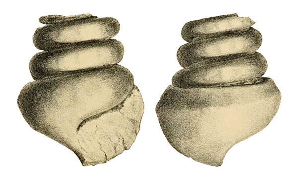 - "Moule unique, incomplet à l'extrémité de la spire, de grande taille, à tours étroits, arrondis, nombreux, croissant lentement, séparés par une suture large et profonde. Surface des tours lisse, indiquant seulement par de légers renflements, espacés sur le pourtour, l'existence de 9 à 10 côtes longitudinales sur la coquille. Ces traces ne sont guère visibles que sur les tours inférieurs. Dernier tour plus haut que les autres, débordant un peu sur le précédent aux approches de l’ouverture, portant en arrière de son milieu une carène médiocrement saillante, distincte surtout dans la moitié terminale du tour. Ombilic fermé ou au moins très étroit; canal antérieur bien prononcé; ouverture incomplète, mais certainement large, peu élevée et évidemment pourvue, sur la coquille, d'une ou plusieurs ailes débordantes."
