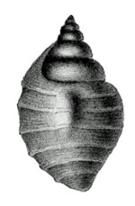 - "Coquille (moule intérieur) ovale, terminée en pointe à ses deux extrémités; tours de spire arrondis, le dernier un peu renflé, ayant une bosse longitudinalement oblongue, placée à la base de l'aile, et six côtes transverses, également espacées; l'aile et le canal manquent; il ne reste que l'empreinte de la digitation la plus rapprochée de la spire, elle s'étend jusqu'au troisième tour."