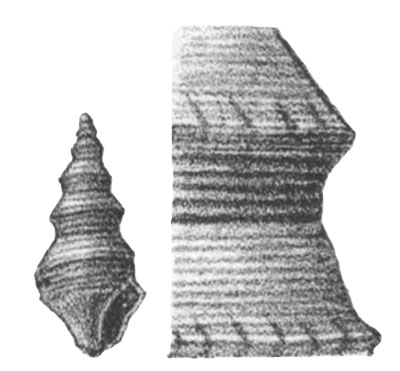 - "Testâ turritâ, fusiformi, elongatâ; anfractibus 8-9 carinatis, striatis, carinâ crenulatâ; ultimo anfractu bicarinato; operturâ subquadrangulâ; columellâ subcallosâ. Caeterae notae desunt."