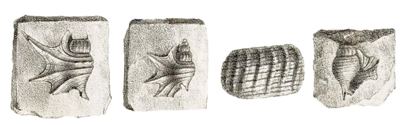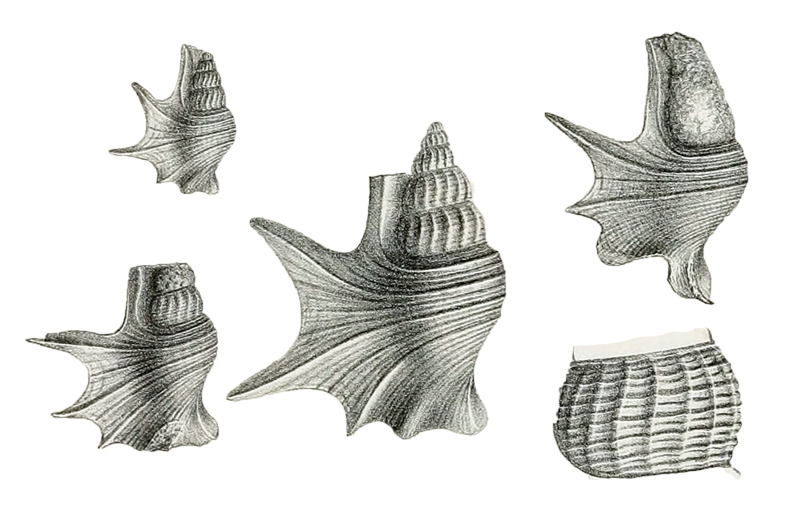 Aporrhais intermedius in De Loriol, Royer & Tombeck, 1872, pl. IV, fig. 15, 16, 16a and 17