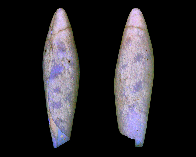 est obtus, un peu ovoïde au milieu de sa hauteur, plus atténuée en avant; ouverture assez courte, largement échancrée par un contour sinueux et excavé, que dépasse notablement l'extrémité de la columelle; bord columellaire mince, assez large, limité par une strie peu visible; labre mince, un peu incliné, convexe en avant, excavé au milieu, puis un peu convexe vers le tiers de la hauteur de la coquille, où il adhère à la spire, en limitant l'ouverture; à partir de ce point, il se dirige obliquement vers le sommet et y aboutit après avoir effectué un tour de spire." ![]() Seraphs olivaceus Cossmann, 1889; Lutetian, Eocene; Les Garennes, Chaussy, Val-d'Oise, Île-de-France, France; Neotype; Coll. MNHN no. A28885; Copyright Museum national d'Histoire naturelle Paris Specimens from private collections References