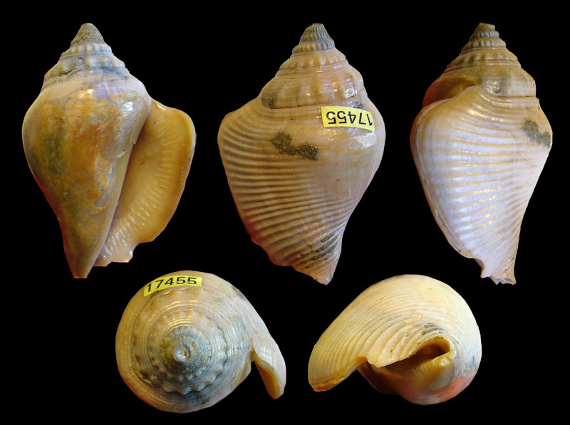 Locus typicus: Harveys Creek, half a mile above abandoned mill, Leon County, Florida, USA Stratum typicum: upper Miocene Types: holotype: U.S. Nat. Mus. Cat. No. 370260, height 62 mm, width 36 mm; paratype U.S. Nat. Mus. Cat. No. 370259, height 45 mm, width 24 mm. ![]() Strombus pugilis floridianus Mansfield, 1930, pl. 13, fig. 9, 10 History and Synonymy 2011 Strombus floridanus fruitvillensis Petuch & Drolshagen, 2011 Specimens from institutional collections ![]() Strombus floridanus Mansfield, 1930; Tamiami Formation, upper Pliocene; Quality Aggregates, Richardson Road Pit, Sarasota Co., Florida, USA; 1995; Coll. Stichting Schepsel Schelp SSS24154 ![]() Strombus floridanus Mansfield, 1930; Tamiami Formation, upper Pliocene; Quality Aggregates, Richardson Road Pit, Sarasota Co., Florida, USA; 1995; Coll. Stichting Schepsel Schelp SSS24154 ![]() Strombus floridanus Mansfield, 1930; Tamiami Formation, upper Pliocene; Quality Aggregates, Richardson Road Pit, Sarasota Co., Florida, USA; 1995; Coll. Stichting Schepsel Schelp SSS24154 ![]() Strombus cf. floridanus; Cayo Agua Formation, Zanclean, early Pliocene; north of Pedra Roja Point, Cayo Agua Island, Bocas del Toro Province, Panama; PPP 01188 (=NMB 18373), NMB H18454, height 54.4 mm. Photo: Virgilio Liverani.