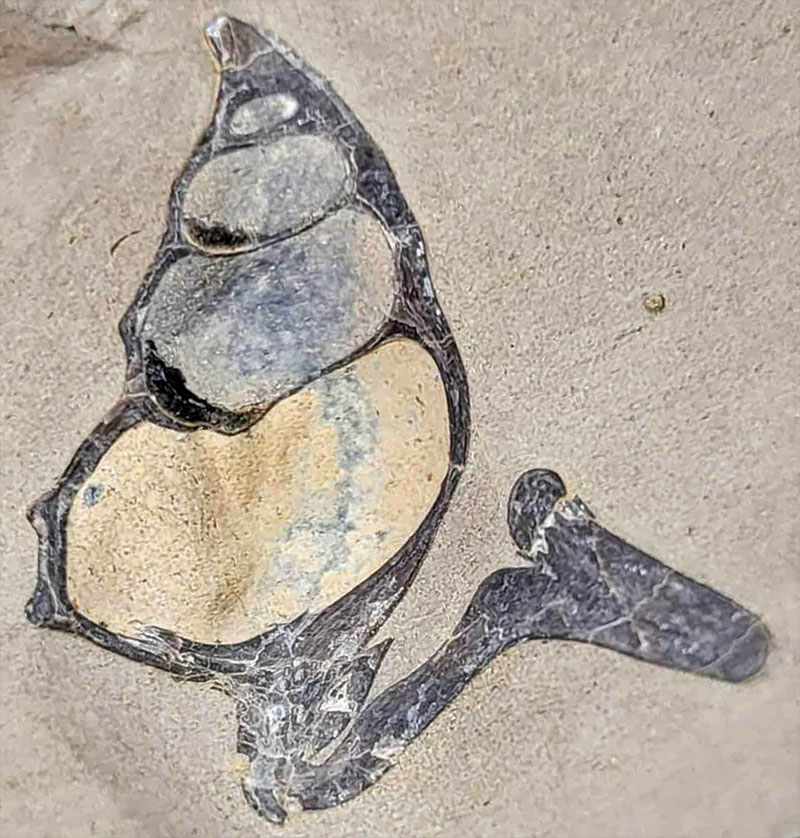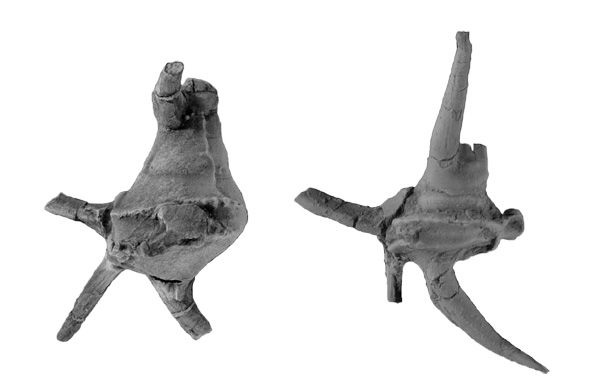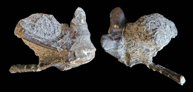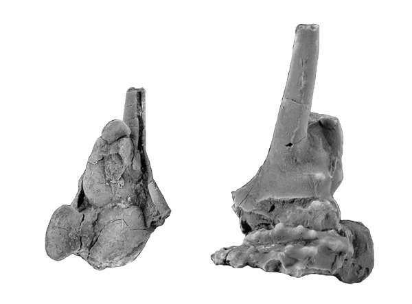 - Right: Paratype; lower Haslam Formation, upper Santonian, upper Cretaceous; Siltstone on northern bank of Puntledge River at the Van Arcs Farm, near Courtenay, Vancouver Island, British Columbia Province, Canada; Coll. no. RBCM.EH2011.007.004