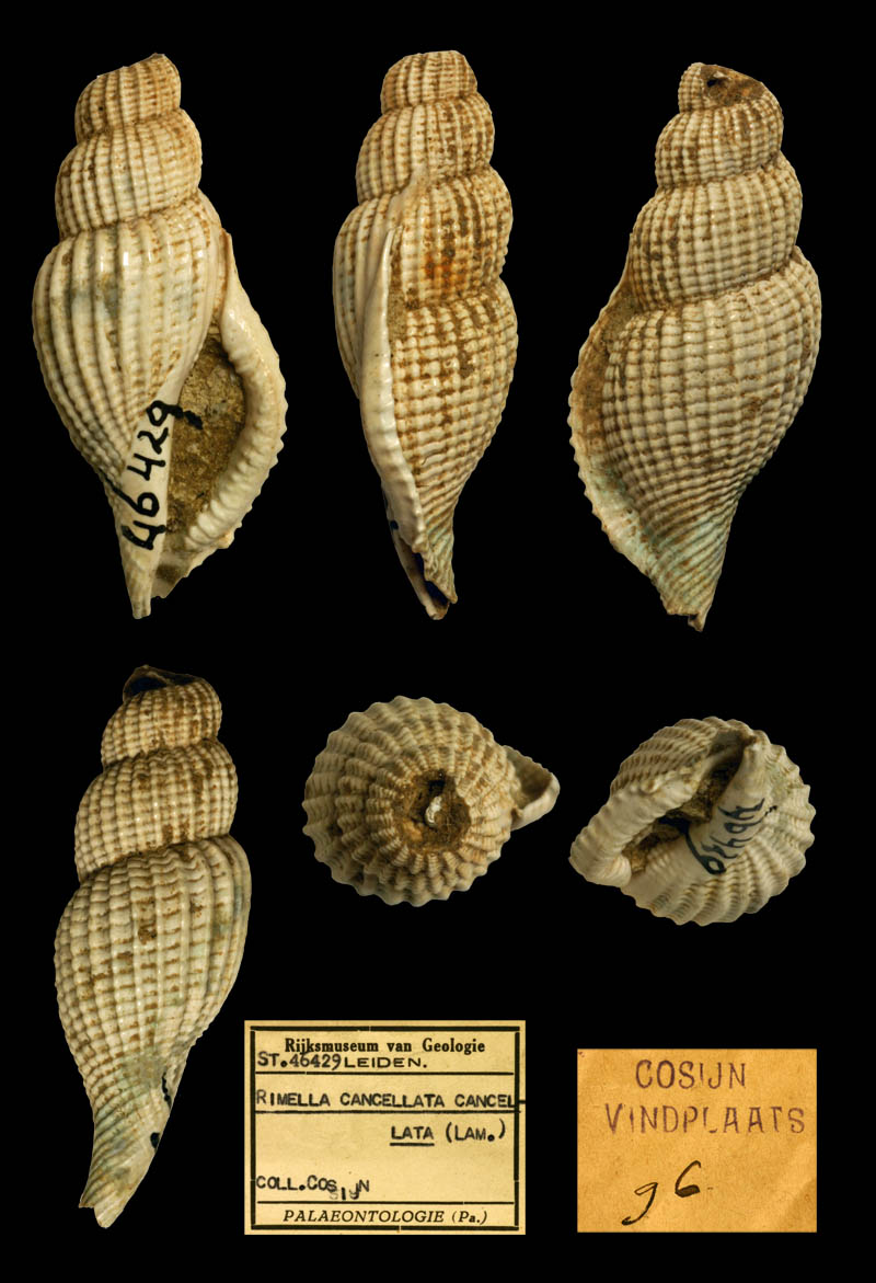 1903 ![]() Rimella cancellata in Cossmann, 1903, pl. VI, fig. 14, 15