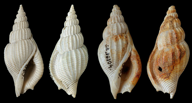 ![]() Varicospira cf. spinifera (Martin, 1899); Noil Tobee River, Nikiniki, East Nusa Tenggara Province, West Timor Island, Indonesia; Coll. BM(NH) no. G.51678-81 ![]() Varicospira spinifera (Martin, 1899); upper Miocene or Pliocene; Dent Peninsula, Sabah State, North Borneo, Malaysia; Ex-coll. E. Wenk, 1937; Coll. Naturhistorisches Museum Basel no. H14411; Photo Virgilio Liverani, from Cox, 1948 ![]() Varicospira cf. spinifera (Martin, 1899); Age unknown, Pliocene?; Obi Island, mouth of Kali Wai Lower, North Maluku Province, Indonesia; 29,75 mm; Coll. ZMA; Ex-coll. H.Th. de Booy, collected 1/1928; Photo Ron Voskuil ![]() Varicospira cf. spinifera (Martin, 1899); upper Pliocene; "Solo River", Sangiran, Java Island, Indonesia; Coll. Elmar Mai